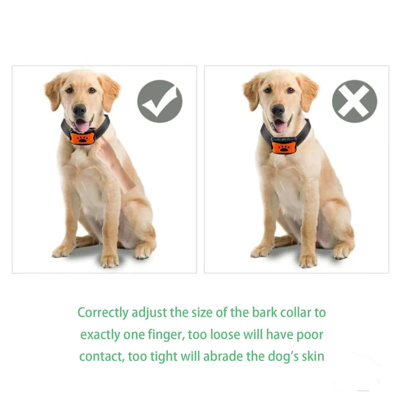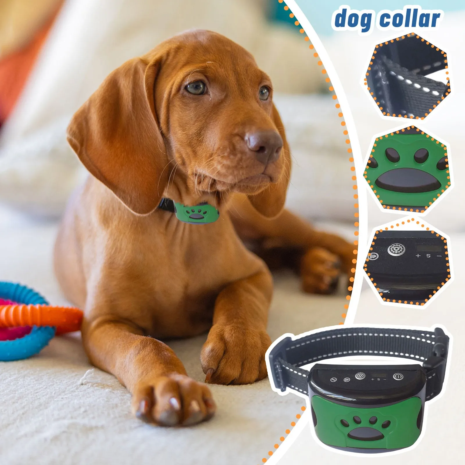 Le collier est léger, réglable, et adapté aux chiens de petite à moyenne taille. Parfait pour une utilisation à la maison, lors des promenades ou même en appartement.