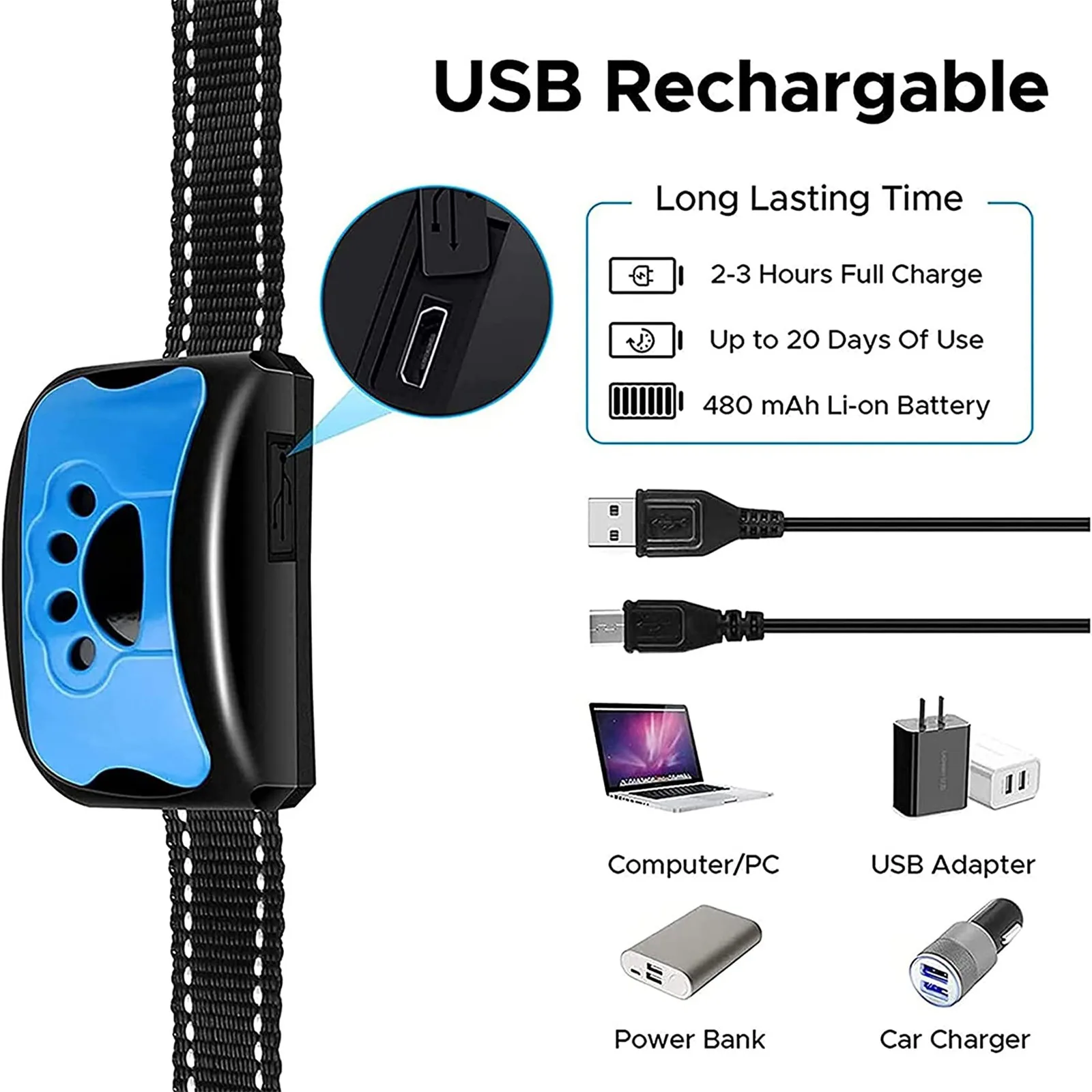 Rechargeable par USB, il est économique et pratique à utiliser au quotidien. Il fonctionne automatiquement : dès que le chien aboie, il déclenche une stimulation sonore ou vibrante pour attirer son attention et décourager l’aboiement.
